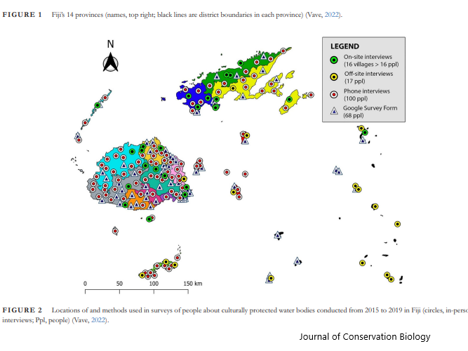 Globally, protected areas associated with sacred sites and cemeteries are an emerging area of research. However, they are biased toward terrestrial systems. In Fiji, funerary protected areas (FPAs) in freshwater and marine systems are culturally protected by Indigenous Fijians following the burial of a loved one on clan land. First documented in the 1800s, FPAs in Fiji have not been researched despite more than 30 years of conservation efforts and countrywide co-management of natural resources. We sought to bridge this knowledge gap by elucidating 8 socioecological attributes of Indigenous FPAs through stratified, purposive, semi structured interviews of 201 key informants across Fiji's 189 districts. Seventy-three districts actively implemented FPAs; another 34 were not being implemented because of low FPA awareness, FPA exclusion from co-management plans, and conflicts in chief selection. Thirty-three percent of districts established FPAs for chiefs only, and 20% established FPAs for any clan member, resulting in the establishment of numerous FPAs annually. From the 1960s to 2019, 188 FPAs were established. Forty-four percent of FPAs were protected for 100 nights, and 47% protected all resources and associated ecosystems in the FPA. Only 25% of districts harvested edible fish and invertebrates; another 22% harvested edible fish only. For some chiefs’ funeral rites, only turtles were harvested, which are protected by law, thereby requiring government exemption for traditional use. The FPA harvest provisions varied from engaging whole communities to engaging specific clans, such as traditional fishers or those who performed the burial. Our results showed that practices associated with FPAs in Fiji are diverse, organically evolving, and more socially nuanced and complex than the fisheries and food provisioning focus they are known for. Erosion of Indigenous knowledge and practices associated with FPAs and FPA exclusion from conservation planning will negatively affect social and ecological resilience, resulting in vulnerable communities.