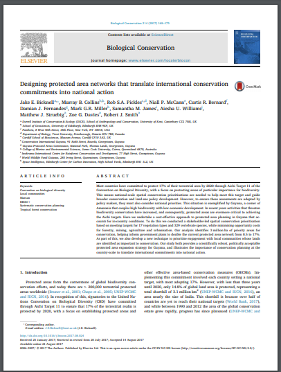 Here we undertake a cost-effective approach to protected area planning in Guyana that accounts for in-country conditions. To do this we conducted a stakeholder-led spatial conservation prioritisation based on meeting targets for 17 vegetation types and 329 vertebrate species, while minimising opportunity costs for forestry, mining, agriculture and urbanisation. Our analysis identifies 3 million ha of priority areas for conservation, helping inform government plans to double the current protected area network from 8.5 to 17%. As part of this, we also develop a new technique to prioritise engagement with local communities whose lands are identified as important to conservation. Our study both provides a scientifically robust, politically acceptable protected area expansion strategy for Guyana, and illustrates the importance of conservation planning at the country-scale to translate international commitments into national action.