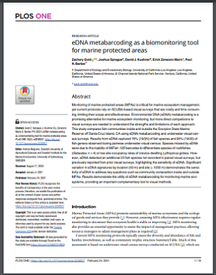 Monitoring of marine protected areas (MPAs) is critical for marine ecosystem management, yet current protocols rely on SCUBA-based visual surveys that are costly and time consuming, limiting their scope and effectiveness. Environmental DNA (eDNA) metabarcoding is a promising alternative for marine ecosystem monitoring, but more direct comparisons to visual surveys are needed to understand the strengths and limitations of each approach. This study compares fish communities inside and outside the Scorpion State Marine Reserve off Santa Cruz Island, CA using eDNA metabarcoding and underwater visual census surveys. Results from eDNA captured 76% (19/25) of fish species and 95% (19/20) of fish genera observed during pairwise underwater visual census. Species missed by eDNA were due to the inability of MiFish 12S barcodes to differentiate species of rockfishes (Sebastes, n = 4) or low site occupancy rates of crevice-dwelling Lythrypnus gobies. However, eDNA detected an additional 23 fish species not recorded in paired visual surveys, but previously reported from prior visual surveys, highlighting the sensitivity of eDNA. Significant variation in eDNA signatures by location (50 m) and site (~1000 m) demonstrates the sensitivity of eDNA to address key questions such as community composition inside and outside MPAs. Results demonstrate the utility of eDNA metabarcoding for monitoring marine ecosystems, providing an important complementary tool to visual methods.