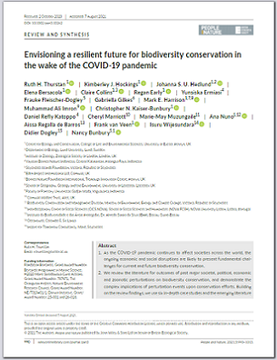 As the COVID-19 pandemic continues to affect societies across the world, the ongoing economic and social disruptions are likely to present fundamental challenges for current and future biodiversity conservation. We review the literature for outcomes of past major societal, political, economic and zoonotic perturbations on biodiversity conservation, and demonstrate the complex implications of perturbation events upon conservation efforts. Building on the review findings, we use six in-depth case studies and the emerging literature to identify positive and negative outcomes of the COVID-19 pandemic, known and anticipated, for biodiversity conservation efforts around the world. A number of similarities exist between the current pandemic and past perturbations, with experiences highlighting that the pandemic-induced declines in conservation revenue and capacity, livelihood and trade disruptions are likely to have long-lasting and negative implications for biodiversity and conservation efforts. Yet, the COVID-19 pandemic also brought about a global pause in human movement that is unique in recent history, and may yet foster long-lasting behavioural and societal changes, presenting opportunities to strengthen and advance conservation efforts in the wake of the pandemic. Enhanced collaborations and partnerships at the local level, cross-sectoral engagement, local investment and leadership will all enhance the resilience of conservation efforts in the face of future perturbations. Other actions aimed at enhancing resilience will require fundamental institutional change and extensive government and public engagement and support if they are to be realised. The pandemic has highlighted the inherent vulnerabilities in the social and economic models upon which many conservation efforts are based. In so doing, it presents an opportunity to reconsider the status quo for conservation, and promotes behaviours and actions that are resilient to future perturbation.