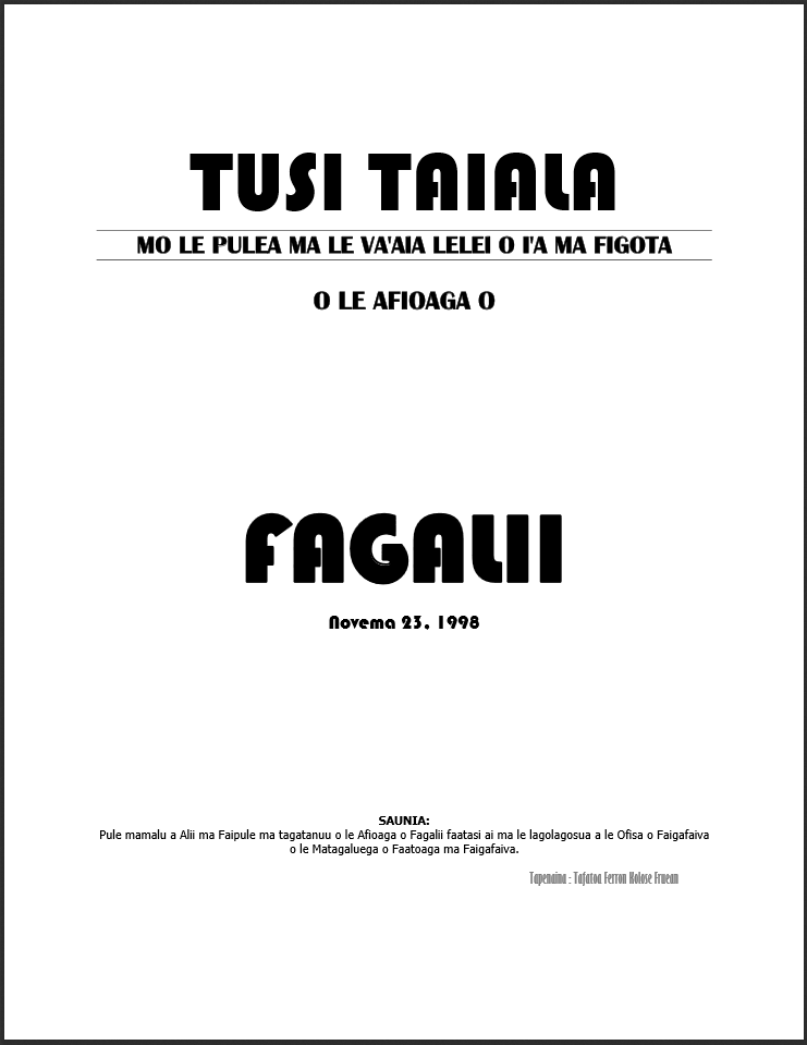 VAEGA TAUA O LE SIOSIOMAGA MO FAIGAFAIVA