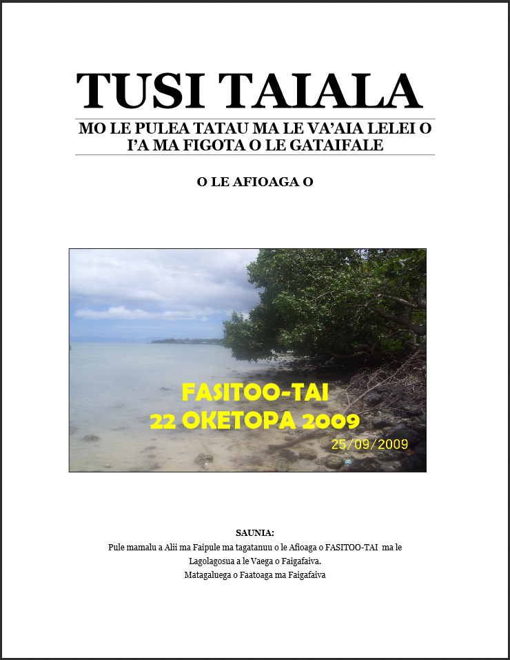 O le autu lenei sa faatalatalanoaina ma malilie autasi i ai vaega uma o le afioaga o FASITOO-TAI: