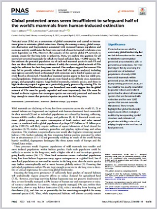 Protected areas (PAs) are a cornerstone of global conservation and central to international plans to minimize global extinctions. During the coming century, global ecosystem destruction and fragmentation associated with increased human population and economic activity could make the long-term survival of most terrestrial vertebrates even be more dependent on PAs. However, the capacity of the current global PA network to sustain species for the long term is unknown. Here, we explore this question for all non-volant terrestrial mammals for which we found sufficient data,∼4,000 species. We first estimate the potential population size of each such mammal species in each PA and then use three different criteria to estimate if solely the current global network of PAs might be sufficient for their long-term survival. Our analyses suggest that current PAs may fail to provide robust protection for about half the species analyzed, including most species currently listed as threatened with extinction and a third of species not currently listed as threatened. Hundreds of mammal species appear to have no viable protected populations. Underprotected species were found across all body sizes, taxonomic groups, and geographic regions. Large-bodied mammals, endemic species, and those in high-biodiversity tropical regions were particularly poorly protected by existing PAs. As new international biodiversity targets are formulated, our results suggest that the global network of PAs must be greatly expanded and most importantly that PAs must be located in diverse regions that encompass species not currently protected and must be large enough to ensure that protected species can persist for the long term.