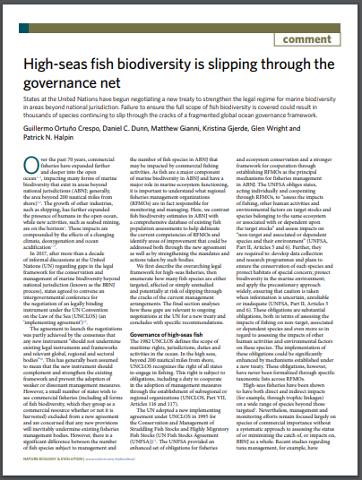 States at the United Nations have begun negotiating a new treaty to strengthen the legal regime for marine biodiversity in areas beyond national jurisdiction. Failure to ensure the full scope of fish biodiversity is covered could result in thousands of species continuing to slip through the cracks of a fragmented global ocean governance framework.