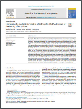 Biodiversity offsets (BO) are increasingly promoted and adopted by governments and companies worldwide as a policy instrument to compensate for biodiversity losses from infrastructure development projects. To provide a framing for understanding the empirical diversity of BO policy designs, we present an ideal-typical typology based on the institutions from which BO is organised: Public Agency, Mandatory Market and Voluntary Offset. With cross-case comparison and stakeholder mapping, we identified the institutional arrangements of six BO policies to analyse how the biodiversity losses and gains are decided. Based on these results, we examined how these six policies relate to the BO ideal types. Our results suggested that the government, contrary to received wisdom, plays a key role not just in enforcing mandatory policies but also in determining the supply and demand of biodiversity units, supervising the transaction or granting legitimacy to the compensation site.