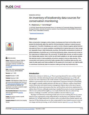 Many conservation managers, policy makers, businesses and local communities cannot access the biodiversity data they need for informed decision-making on natural resource management. A handful of databases are used to monitor indicators against global biodiversity goals but there is no openly available consolidated list of global data sets to help managers, especially those in high-biodiversity countries. We therefore conducted an inventory of global databases of potential use in monitoring biodiversity states, pressures and conservation responses at multiple levels. We uncovered 145 global data sources, as well as a selection of global data reports, links to which we will make available on an open-access website. We describe trends in data availability and actions needed to improve data sharing. If the conservation and science community made a greater effort to publicise data sources, and make the data openly and freely available for the people who most need it, we might be able to mainstream biodiversity data into decision-making and help stop biodiversity loss.