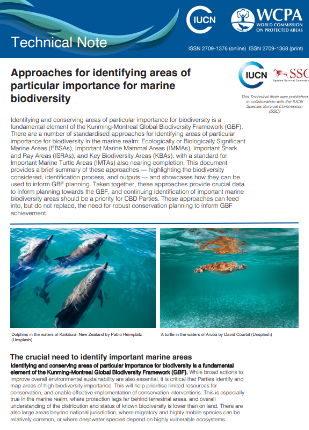 Identifying and conserving areas of particular importance for biodiversity is a fundamental element of the Kunming-Montreal Global Biodiversity Framework (GBF). There are a number of standardised approaches for identifying areas of particular importance for biodiversity in the marine realm: Ecologically or Biologically Significant Marine Areas (EBSAs), Important Marine Mammal Areas (IMMAs), Important Shark and Ray Areas (ISRAs), and Key Biodiversity Areas (KBAs), with a standard for Important Marine Turtle Areas (IMTAs) also nearing completion. This document provides a brief summary of these approaches — highlighting the biodiversity considered, identification process, and outputs — and showcases how they can be used to inform GBF planning.