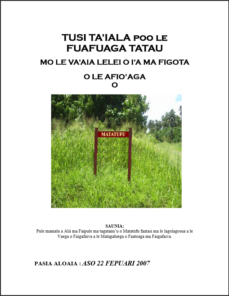 O le autu sa fa’atalatalanoaina ma malilie autasi ai le Pule mamalu a Alii ma Faipule faatasi ma le Komiti a Tina o le Afio’aga o Matatufu i taimi o faatalatalanoaga o le: