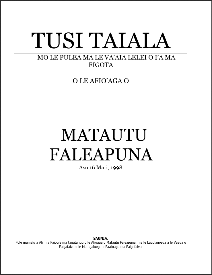 Ina ia Puipuia le Siosiomaga o le Gataifale.