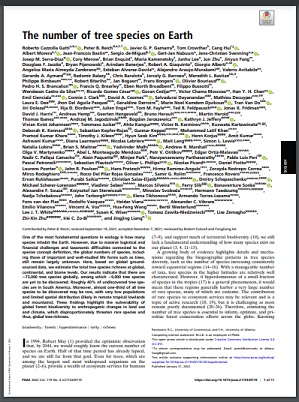 One of the most fundamental questions in ecology is how many species inhabit the Earth. However, due to massive logistical and financial challenges and taxonomic difficulties connected to the species concept definition, the global numbers of species, including those of important and well-studied life forms such as trees, still remain largely unknown. Here, based on global ground sourced data, we estimate the total tree species richness at global, continental, and biome levels. Our results indicate that there are ∼73,000 tree species globally, among which ∼9,000 tree species are yet to be discovered. Roughly 40% of undiscovered tree species are in South America. Moreover, almost one-third of all tree species to be discovered may be rare, with very low populations and limited spatial distribution (likely in remote tropical lowlands and mountains). These findings highlight the vulnerability of global forest biodiversity to anthropogenic changes in land use and climate, which disproportionately threaten rare species and thus, global tree richness.