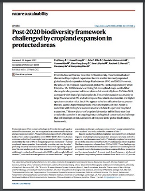 Protected areas (PAs) are essential for biodiversity conservation but are threatened by cropland expansion. Recent studies have only reported global cropland expansion in large PAs between 1990 and 2005. However, the amount of cropland expansion in global PAs (including relatively small PAs) since the 2000s is unclear. Using 30-m cropland maps, we find that the cropland expansion in PAs accelerated dramatically from 2000 to 2019, compared with that of global croplands. The areal expansion was mainly in large PAs, less-strict PAs and Afrotropical PAs, which also matches the higher species extinction risks. Such PAs appear to be less effective due to greater threats, such as higher background cropland expansion rate. Notably, some PAs with the highest conservation levels failed to prevent cropland expansion. This new picture of cropland dynamics in PAs illustrates that cropland expansion is an ongoing intractable global conservation challenge that will impinge on the aspirations of the post-2020 global biodiversity framework.