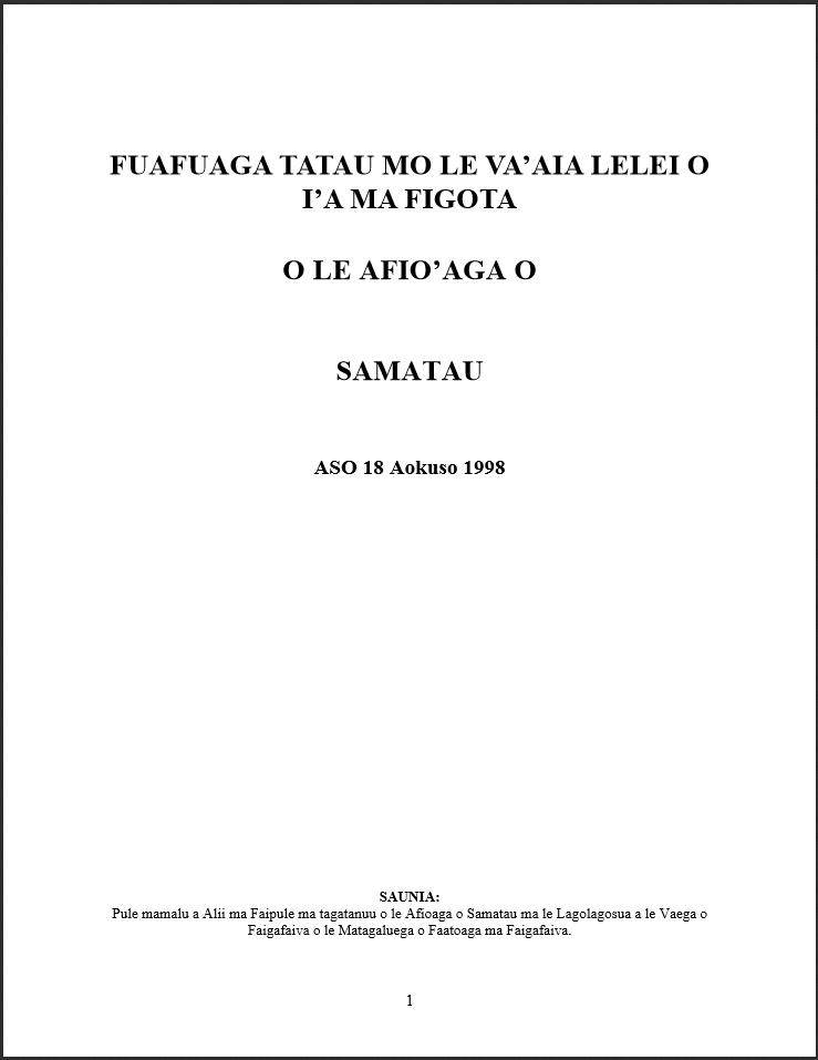 O lenei tapenaga sa saunia lava e alii ma faipule ma tagatanuu o Samatau faatasi ai ma ni fautuaga ma le lagolagosua a le Ofisa o Faigafaiva o le Matagaluega o Faatoaga ma Faigafaiva.