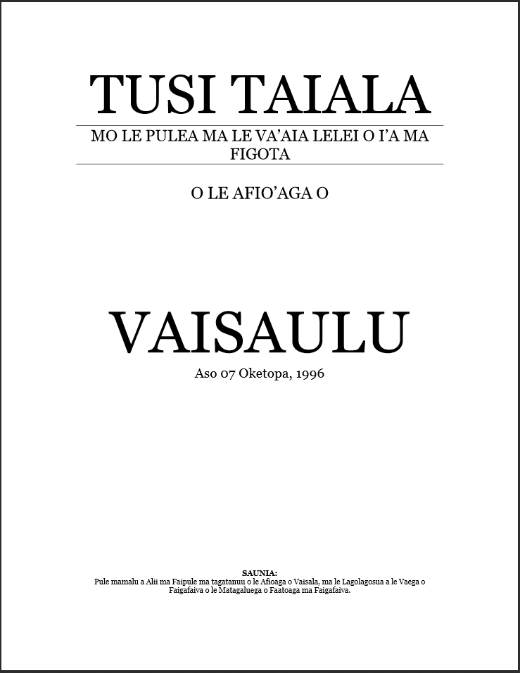 Tulafono Faale-nuu i aso ua mavae & aso nei