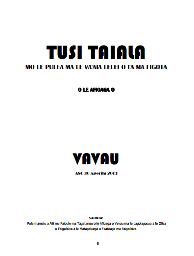 ma aafiaga mai i afa malolosi (Ofa 1990, Val 1991, Heta 2004) ua tuanai.