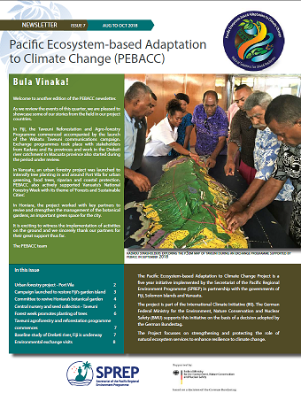Welcome to this seventh issue of the SPREP Pacific Ecosystem-based Adaptation to Climate Change (PEBACC) project newsletter, an initiative to disseminate information on Ecosystem- based Adaptation (EbA). This edition covers the period from August to October 2018. Click on the link below to access the full newsletter.