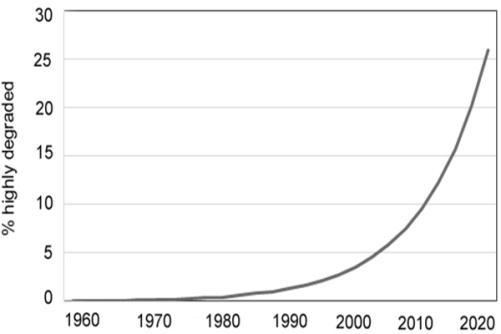 Figure:  Exponential rise in degradation of the protected area network in Africa
