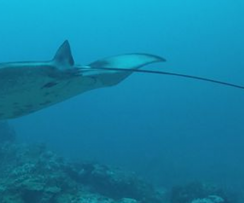 A pregnant reef manta ray (Mobula alfredi) has been spotted swimming far offshore in the Eastern Pacific Ocean, near Cocos Island, which is a long way from the creature's traditional home. Click on the link below to read the full article.