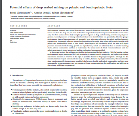 Environmental concerns were raised from the very onset of discussions concerning the extraction of metalliferous ores from the deep sea, but most studies have targeted the expected impacts on the benthic communities only. Click on the link below to access the full article.