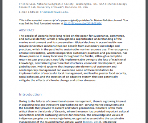 In Oceania, there is a resurgence of ocean management that incorporates customary local practices and governance.