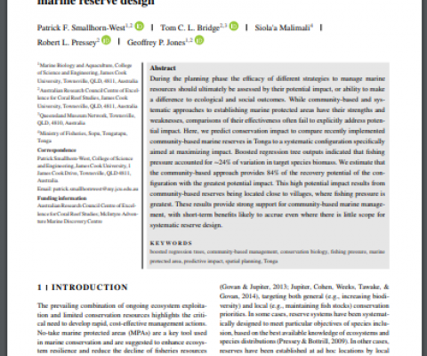 In Tonga, no-take marine reserves designed with, and managed by, local communities are predicted to achieve a conservation impact... The result suggests that community-based marine management can be highly effective, in this case because reserves are located near villages that exert fis