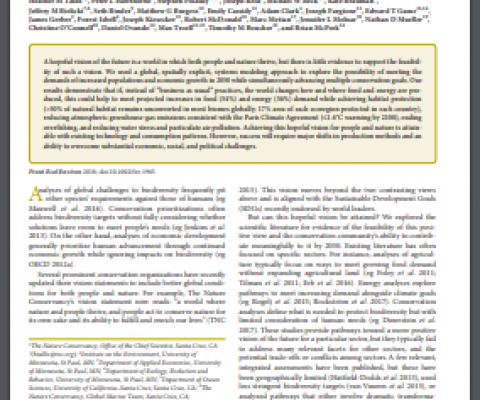 A hopeful vision of the future is a world in which both people and nature thrive, but there is little evidence to support the feasibility of such a vision. Click on the link below to access the full paper.