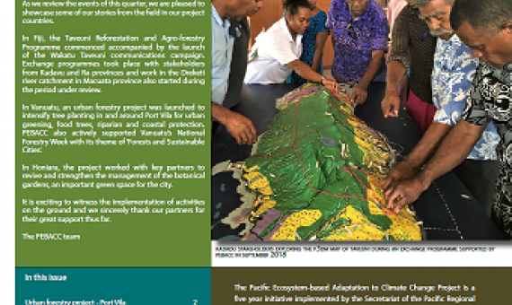 Welcome to this seventh issue of the SPREP Pacific Ecosystem-based Adaptation to Climate Change (PEBACC) project newsletter, an initiative to disseminate information on Ecosystem- based Adaptation (EbA). This edition covers the period from August to October 2018.