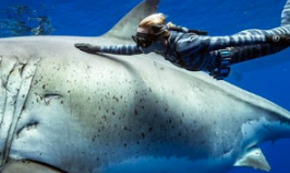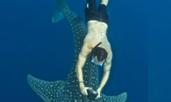 Several photos and videos of Ramsey swimming with, and even occasionally touching, the giant shark have since gone viral on social media, leaving many awestruck over the breathtaking images.